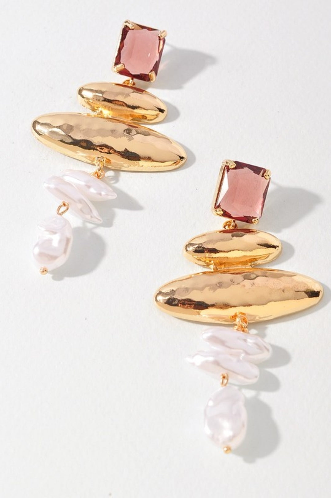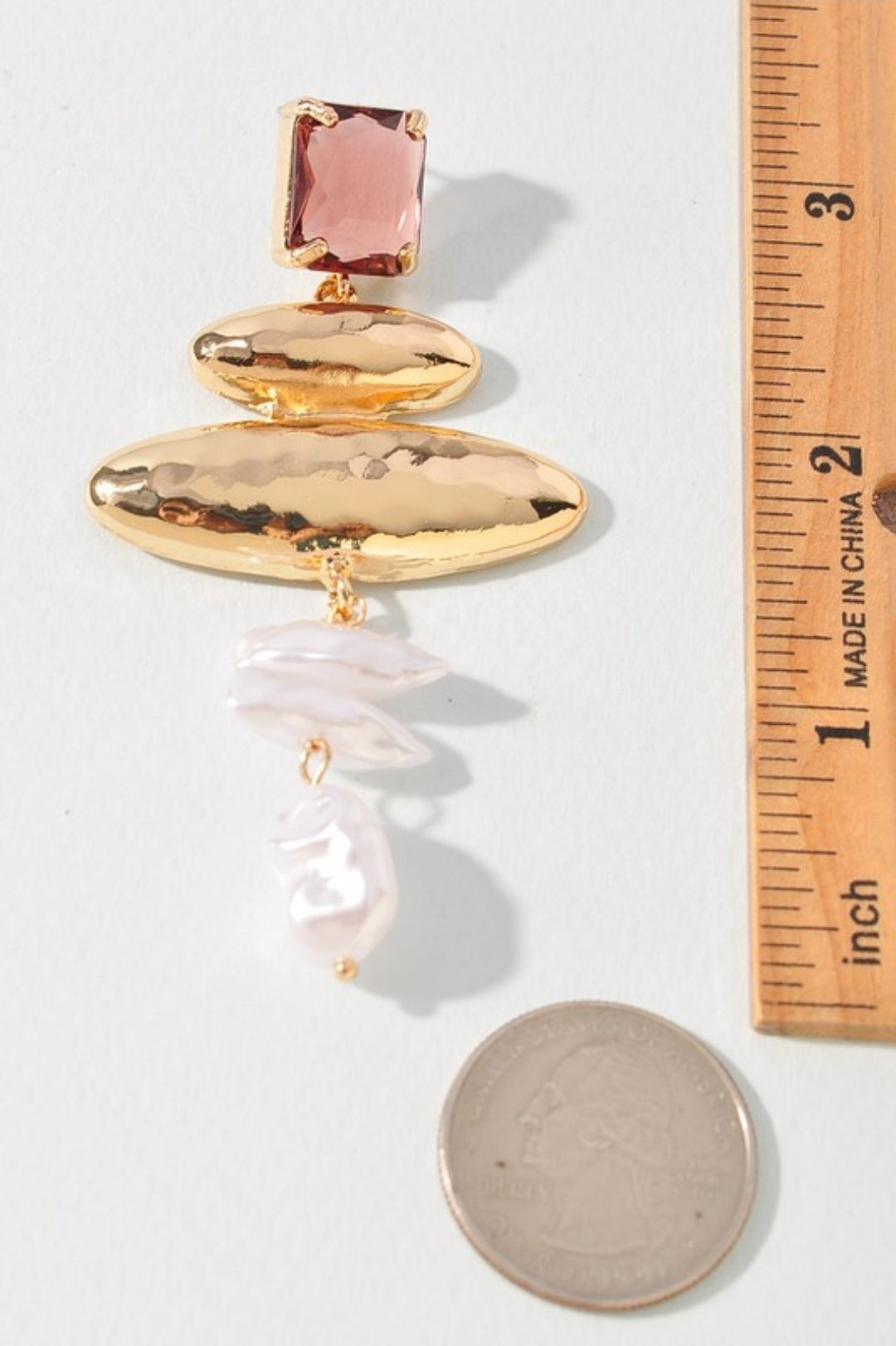 Elevate your style with these stunning Square Stone Oval Shape Pearl Dangle Earrings. The unique square stone design paired with the elegant oval shape pearl bead creates a modern and sophisticated look. Add a touch of luxury to any outfit and make a statement.